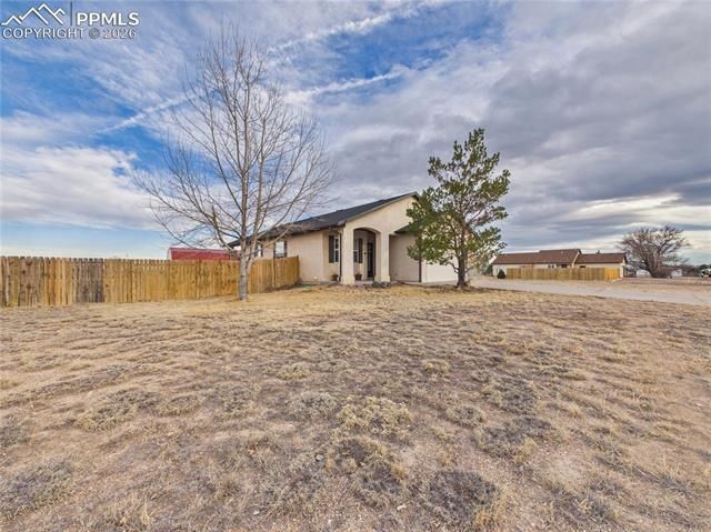 This charming 3-bedroom, 2-bathroom home in Pueblo West features a 2-car garage and is situated just one block from Prairie Winds Elementary. Inside, enjoy tall vaulted ceilings, recessed lighting, and durable LVP flooring throughout, complemented by a whole-home humidifier for comfort. The bright living room boasts large windows, flowing seamlessly into the kitchen and dining area which is anchored by a cozy gas fireplace. The area includes stainless steel appliances and a charming dining nook. The primary bedroom offers convenient outside patio access, a full ensuite bathroom with a private water closet. Outdoor living is a delight with a covered back porch perfect for evening meals. The backyard is entirely fenced and features raised garden beds and a massive 12x32 storage shed. Out front, the covered front porch is ideal for enjoying Colorado sunsets. Schedule a showing today!